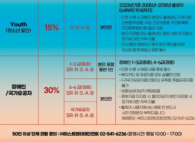 청소년 15%, 장애인/국가유공자 30%할인이 있습니다.