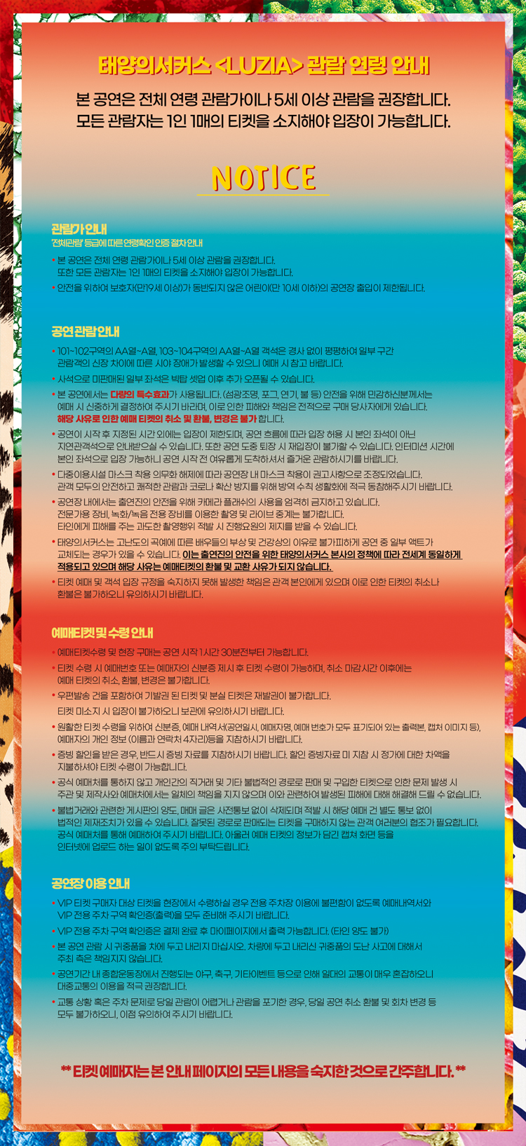 태양의 서커스 루치아 주의사항