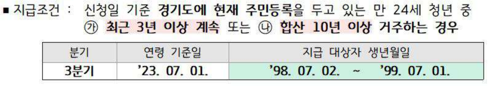 경기도 청년기본소득 신청 자격
