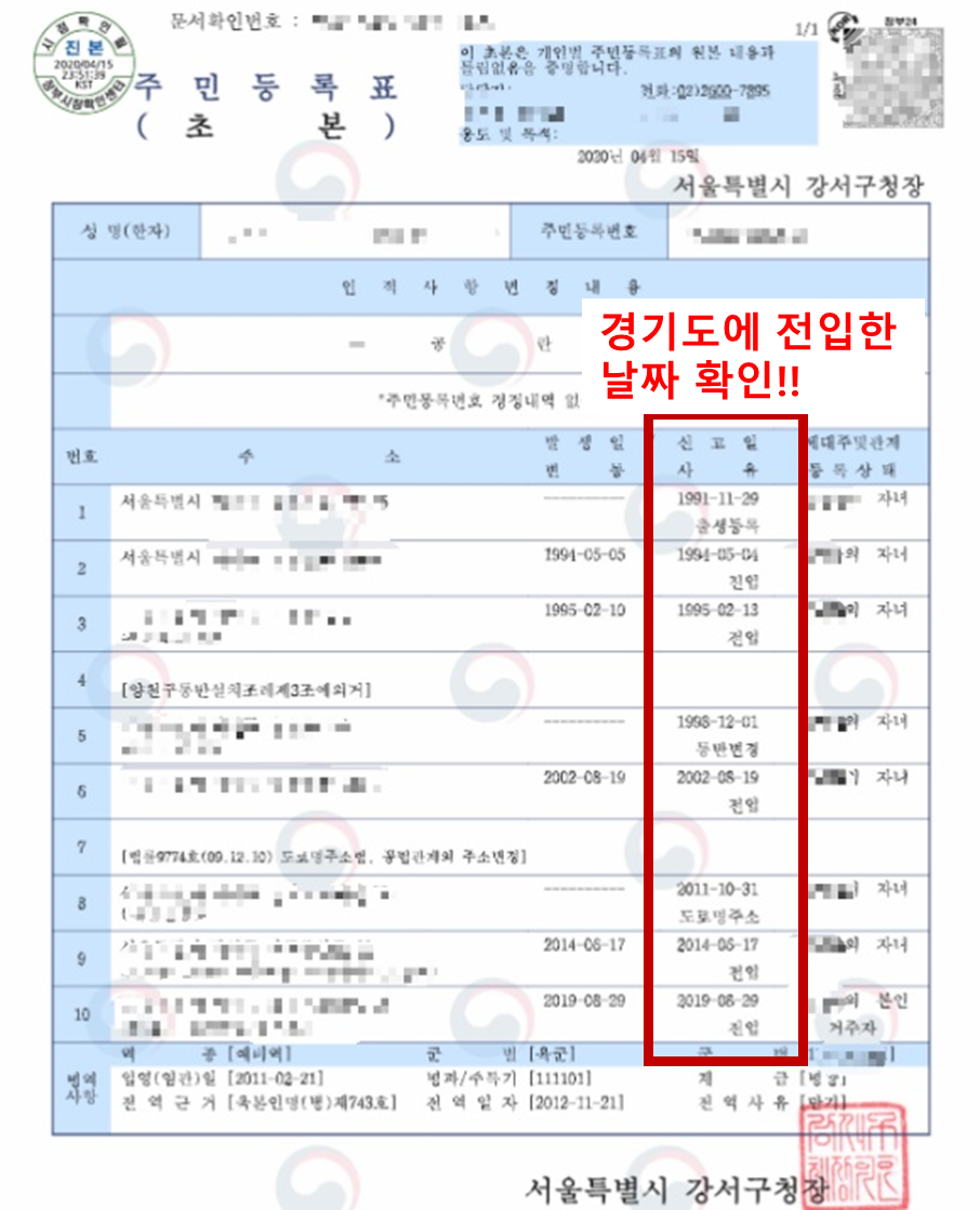 전입일을 확인해서 2020년 7월 1일 이전에 전입신고를 해서