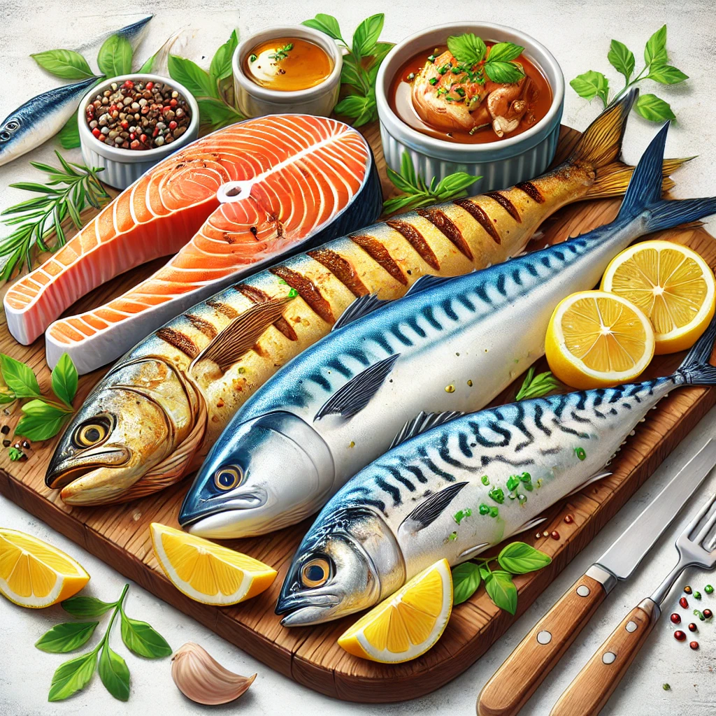 연어, 고등어, 참치, 정어리, 청어 등 건강한 지방이 많은 생선을 추천드립니다.